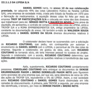 Após ser preso, em delação ao Ministério Público, Daniel Gomes deu detalhes de um esquema envolvendo a compra do Laboratório Público da Paraíba (Lifesa), numa “sociedade oculta” com o ex-governador Ricardo Coutinho. A operação foi feita por meio da empresa Troy SP Participações, em nome de dois funcionários seus: Sergio Motta e Maurício Neves.